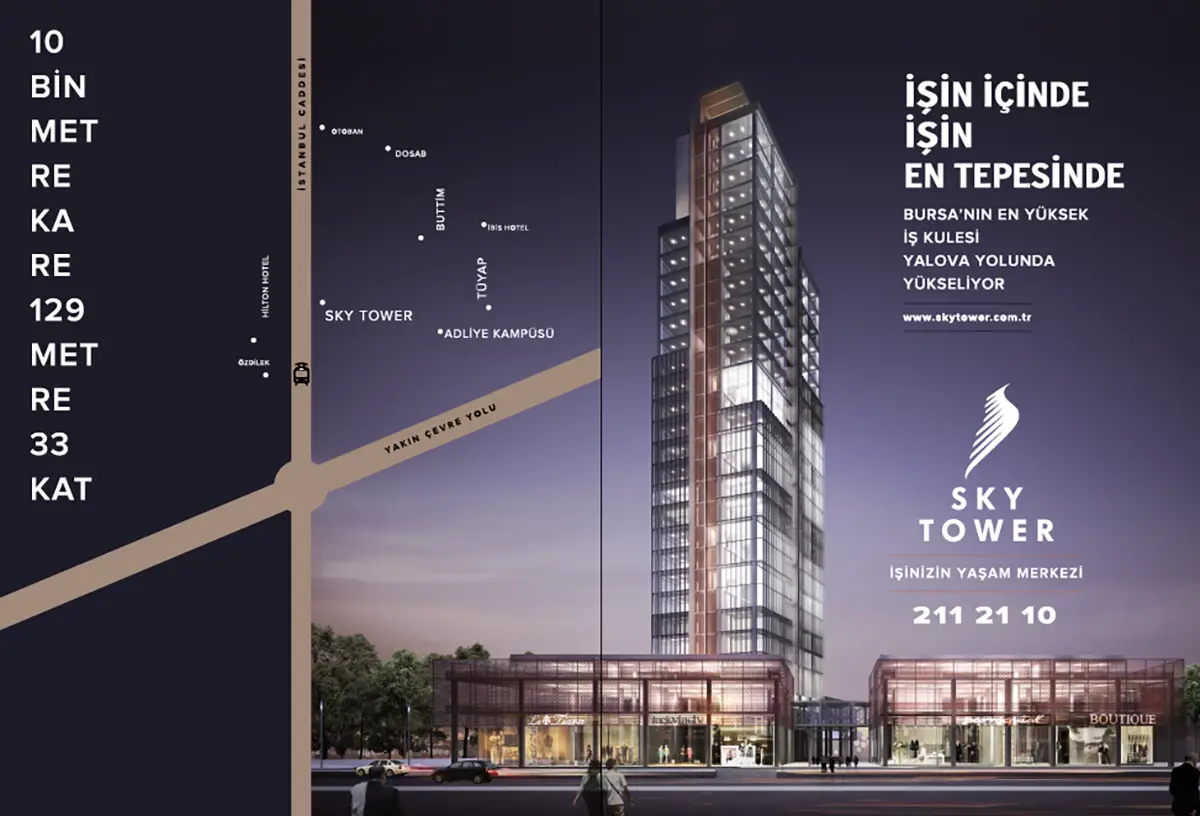 PROJE, BURSA NIN EN YÜKSEK İŞ MERKEZİ OLUP FİRMAMIZ TARAFINDAN TÜM BETONARME VE ÇELİK KONSTRÜKSİYON PROJELERİ ÜSTLENİLMİŞ AYRICA FİRMAMIZ KOORDİNATÖRLÜĞÜND
